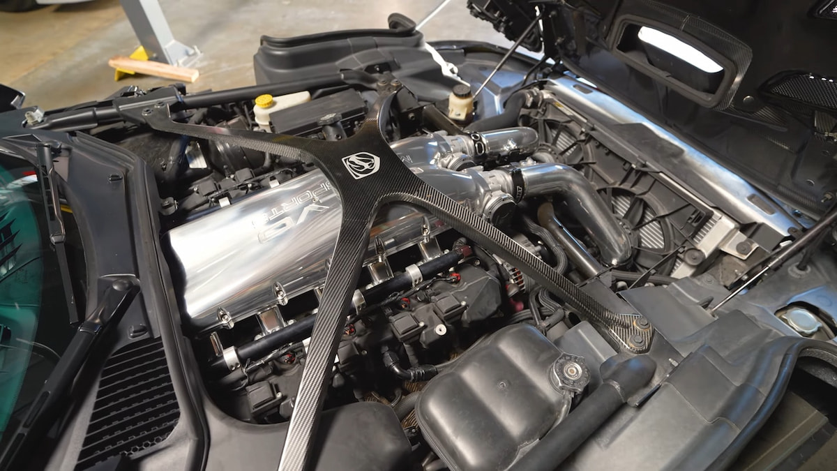 اما برای مهندسان کلاوو موتوراسپرت (Calvo Motorsports)، این اعداد تنها نقطه شروع محسوب میشدند. آنان با حفظ بلوک اصلی موتور، وارد قلمرو بازمهندسی تمامعیار شدند و تغییراتی مانند افزودن سامانه توئینتوربو اختصاصی، تعویض انژکتورها و پمپهای سوخت با نمونههای مسابقهای، تقویت شاتون و پیستونها و بازنویسی کامل نرمافزار مدیریت موتور را اعمال کردند.