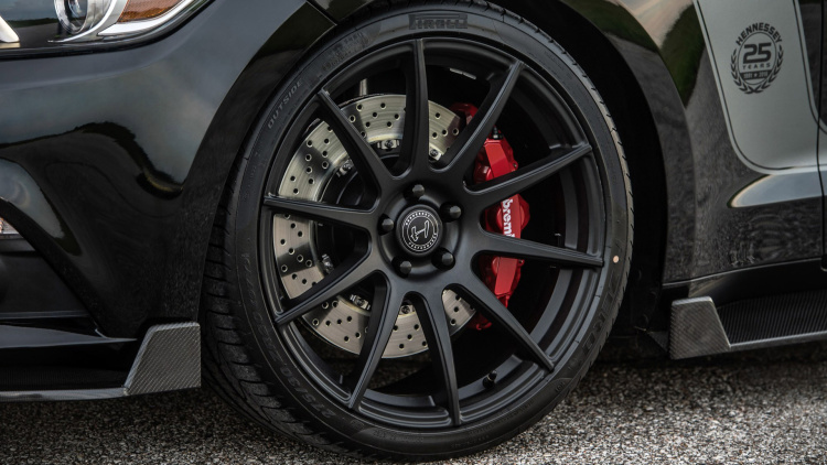 به دلیل اینکه توانایی 804 اسب بخار و گشتاور 648 پوند فوت، لاستیکها را در چند دور رسما نابود میکند، هنسی لاستیکهای میلشین پایلوت سوپر اسپرت 275/30/20 موجود در موستانگ جیتی استاندارد را با مدل 275/40/19 تعویض کرد. بااینکه لاستیکهای میلشین پایلوت بسیار باکیفیت هستند، اما سوال اینجاست که توان تحمل چنین قدرتی را نیز دارند؟