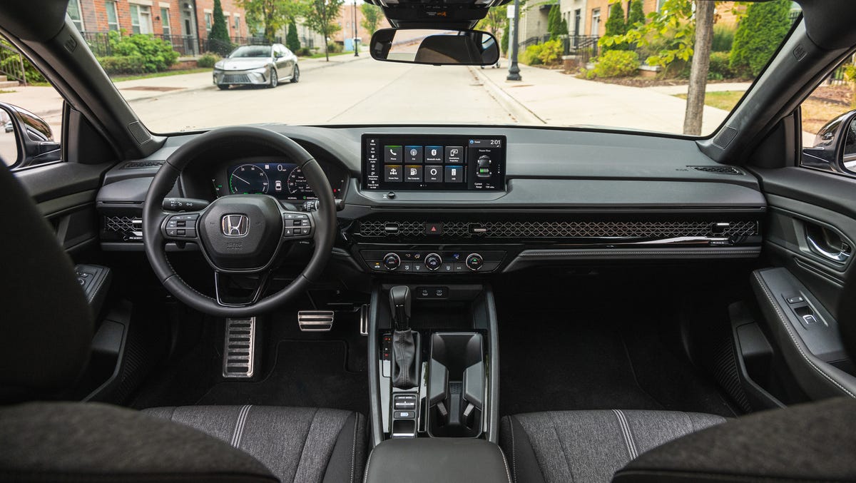 بزرگترین بهروزرسانی داخلی هوندا آکورد ۲۰۲۶ شامل صفحهنمایش لمسی ۹ اینچی بزرگتر بهعنوان استاندارد در تمام مدلها است. این نمایشگر از Apple CarPlay و Android Auto بیسیم پشتیبانی میکند و شارژر بیسیم تلفن نیز در دسترس همه قرار گرفته است. حفظ دکمه فیزیکی صدا یک مزیت کاربری محسوب میشود.