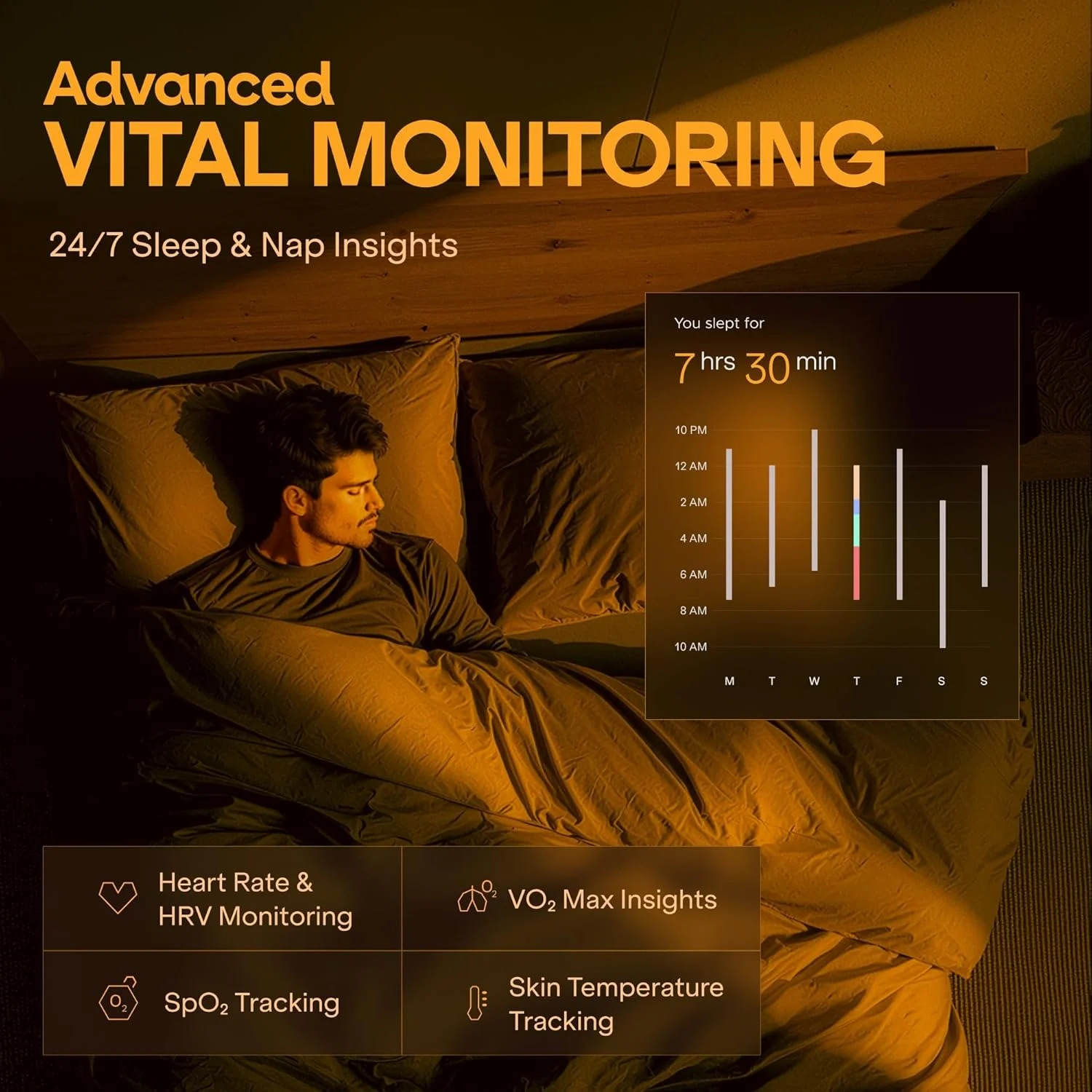 یکی از ویژگیهای برجسته این محصول سیستم پایش سلامت جامع آن است. حسگرهای دقیق بهکاررفته در دستگاه امکان اندازهگیری مداوم ضربان قلب و سطح اکسیژن خون را فراهم میکنند.