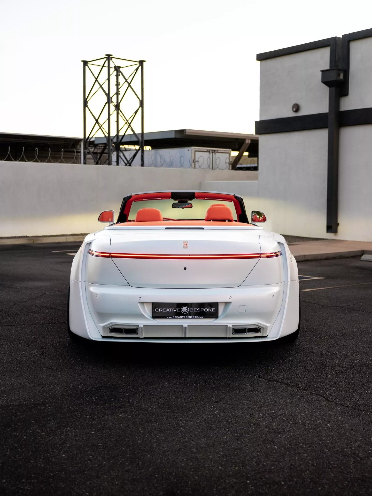 فضای داخلی رولزرویس داون Venuum با ترکیب چرم سفید و نارنجی با کنتراست بالا پوشیده شده است. این تِم رنگی روشن، هماهنگ با ظاهر بیرونی جسورانه خودرو، تجربهای منحصر به فرد را برای سرنشینان فراهم میکند.
