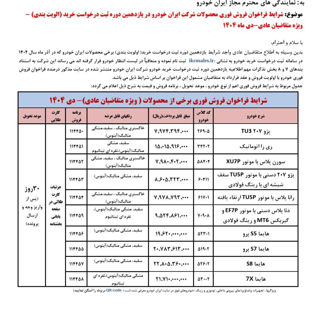 - شرایط فروش فوری محصولات ایران خودرو ویژه متقاضیان عادی – دی 1404
