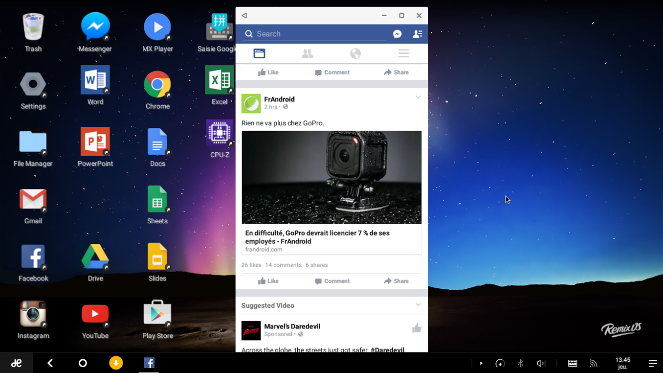 حال که سیستم عامل Remix OS به موفقیت بر روی کامپیوتر شما بارگذاری شد میتوانید از رایانه خود بهعنوان یک گجت اندرویدی حرفه استفاده کنید. شاید تعجب کنید که در این سیستم عامل نشانی از Google Play Store مشاهده نمیشود و علت اصلی آن قوانین گوگل است که توسعهدهندگان از امکان دسترسی به اپلیکیشنهای گوگل پلی در نسخههای شخصی سازه شده اندروید بازداشته شدهاند اما برای نصب بازیها و برنامههای اندروید لازم تا همانند گوشی عمل کرده و با در دست داشتن فایل apk برنامهها اقدام به نصب آنها بهصورت دستی نمایید. در پایان نیز نگاهی کوتاه به ویژگیهای سیستم عامل Remix OS میاندازیم: