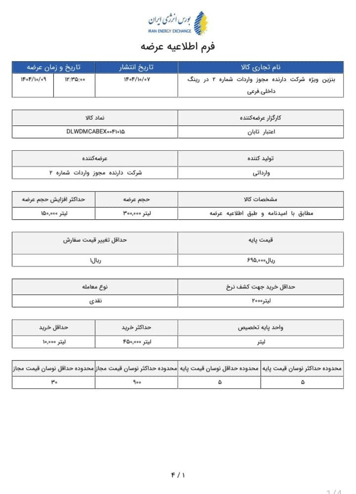 در نخستین مرحله عرضه که اوایل آذرماه صورت گرفت، قیمت پایه این بنزین، ۶۵ هزار و ۸۰۰ تومان تعیین شده بود. اما در اطلاعیه دوم که تنها با فاصلهای یکماه منتشر شده است، این نرخ به ۶۹ هزار و ۵۰۰ تومان افزایش یافته است. این تغییر قیمت پایه به طور مستقیم بر نرخ نهایی که مصرفکننده پرداخت میکند تأثیر خواهد گذاشت و باید منتظر عبور قیمت جایگاهها از مرز ۸۳ هزار و ۷۰۰ تومان فعلی باشیم.