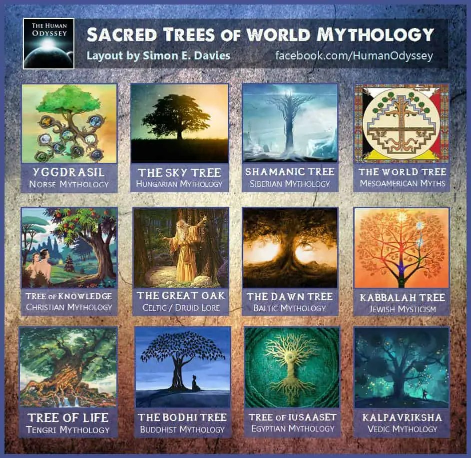 درختان مقدس از دوران ماقبل تاریخ مورد احترام بوده و نمادی از زندگی، مرگ و تولد دوبارهاند. «درخت جهان» در اساطیر مختلف، با شاخههایی تا آسمان و ریشههایی در دنیای زیرین، دروازهای به ابعاد دیگر محسوب میشد.