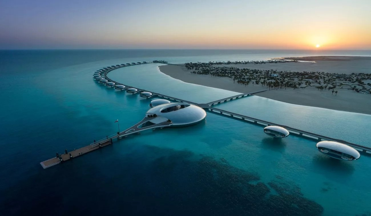 جزیره تفریحی «لاحق» (Laheq)، بار دیگر جاهطلبی عربستان سعودی را در بازتعریف معماری لوکس و پایدار در دریای سرخ به نمایش گذاشته است. این جزیره که توسط استودیو فاستر + پارتنرز طراحی شده، بخشی از چشمانداز بلندپروازانه توسعه سواحل غربی عربستان بهشمار میرود و نمونهای کمنظیر از پیوند طراحی آیندهنگر با احترام به طبیعت محسوب میشود. در قلب لاحق، یک سازه مصنوعی عظیم و حلقوی به قطر ۸۰۰ متر قرار دارد. دایرهای شناور بر سطح دریا که مانند حلقهای نقرهای بر آب میدرخشد و درون آن مجموعهای از هتلها، ویلاهای مجلل و آپارتمانهای دریایی جای گرفتهاند.