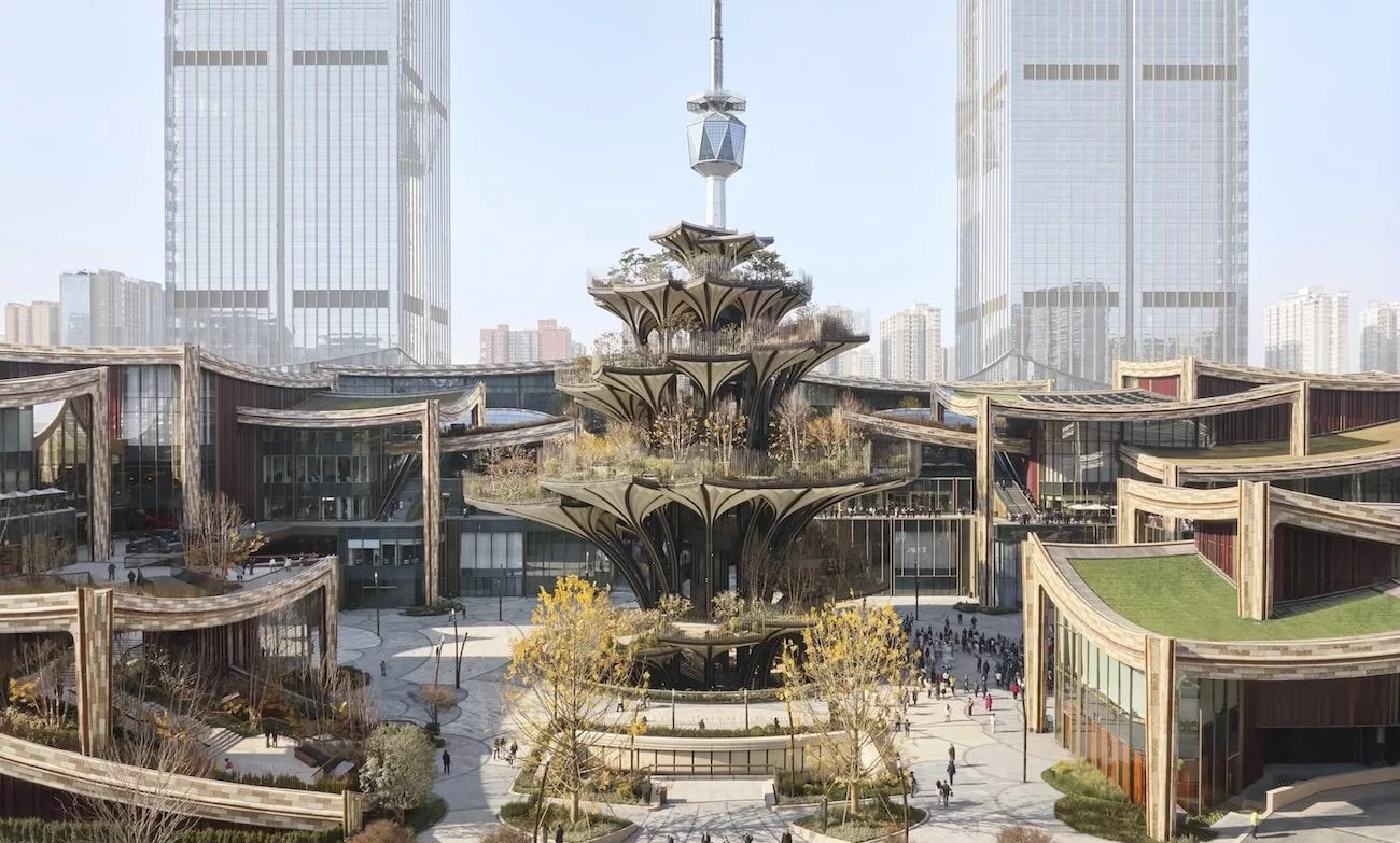 بازدیدکنندگان میتوانند از پایین تا بالای این درخت زنده بالا بروند و در مسیر، با لایههای گوناگون از پوشش گیاهی که تنوع زیستی مسیر جادهی ابریشم را بازآفرینی میکند روبهرو شوند.پوشش بیرونی این سازه درخت مانند از بیش از ۱۰۰ هزار کاشی سرامیکی دستساز تشکیل شده که یادآور بافت سفالهای باستانی و ارتش سفالی امپراتور چین شیهوانگ است. این کاشیها با درخششی لطیف در زیر نور خورشید، جلوهای بین واقعیت و خیال میآفرینند. در طراحی این پروژه، هیترویک همچون همیشه بر اصولی چون پویایی، تعامل انسانی و ادغام معماری با طبیعت تأکید داشته است.