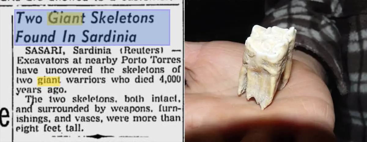 بومیان منطقه معتقدند که در گذشتههای دور نژادی از غولها در این جزیره زندگی میکردند. وجود سازههایی عظیم به نام «مقبره غولها» (Tomba dei Giganti) که گاهی طولشان به ۳۰ متر میرسد، به این شایعات دامن زده است.