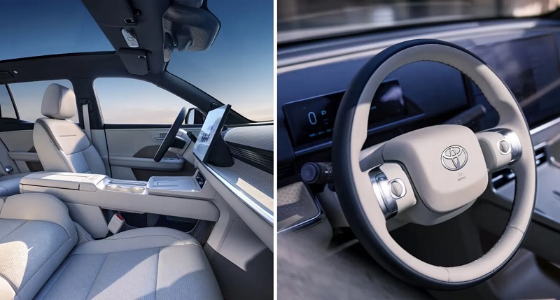 رویکرد طراحان این کراس اوور الکتریکی مبتنی بر مینیمالیسم دیجیتال با تکیه بر فناوریهای به روز بوده تا فضایی آرام و کاربردی در اختیار سرنشینان قرار بگیرد. یکی از تمهای جذابی که تویوتا با الهام از آن فضای کابین را تزئین کرده، «بازگشت پرندگان مهاجر به خانه» بوده و همین المانهای ظریف باعث القای احساس آرامش شده است.