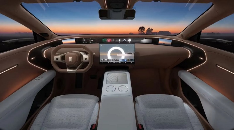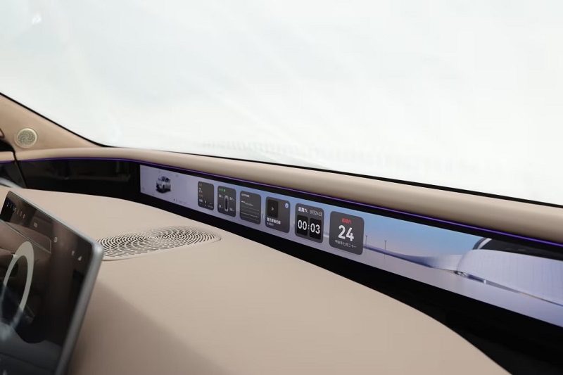 در قسمت فوقانی داشبورد یک پنل سرتاسری قرار گرفته که از سه نمایشگر مجزا تشکیل شده است. یکی از این صفحه نمایشها در نقش کلاستر یا پشت آمپر و به صورت دیجیتالی در دسترس راننده بوده و دو نمایشگر دیگر مربوط به دوربینهای جانبی هستند و به عنوان آینه بغل میتوانید از آنها استفاده کنید.
