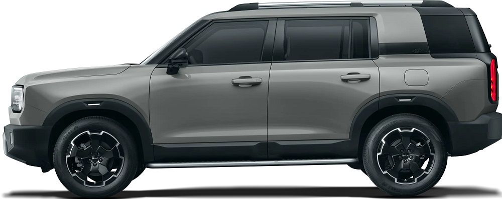 پروفیل جانبی با تلفیقی از حجمدهیهای تخت و در عین حال برجسته طراحی شده است. از این قسمت احساس استحکام و مقاومت منتقل میشود و بدنه جعبهای شکل آن به این حس شاخ و برگ اضافی میدهد. همچنین حس آفرودی و خشن این شاسیبلند به لطف ستونهای ضخیم، خط شانه صاف و گلگیرهای برجسته تقویت شده است. جالب اینجاست که ارتفاع این SUV در مقایسه با طول آن بیشتر بوده و همین در نگاه اول خودرو را کشیده و دراز جلوه میدهد که با ساختار و هدف خودرو در یک راستا بوده و همخوانی دارد. رینگهای بزرگ نیز هیجان نمای جانبی را بیشتر کرده است.