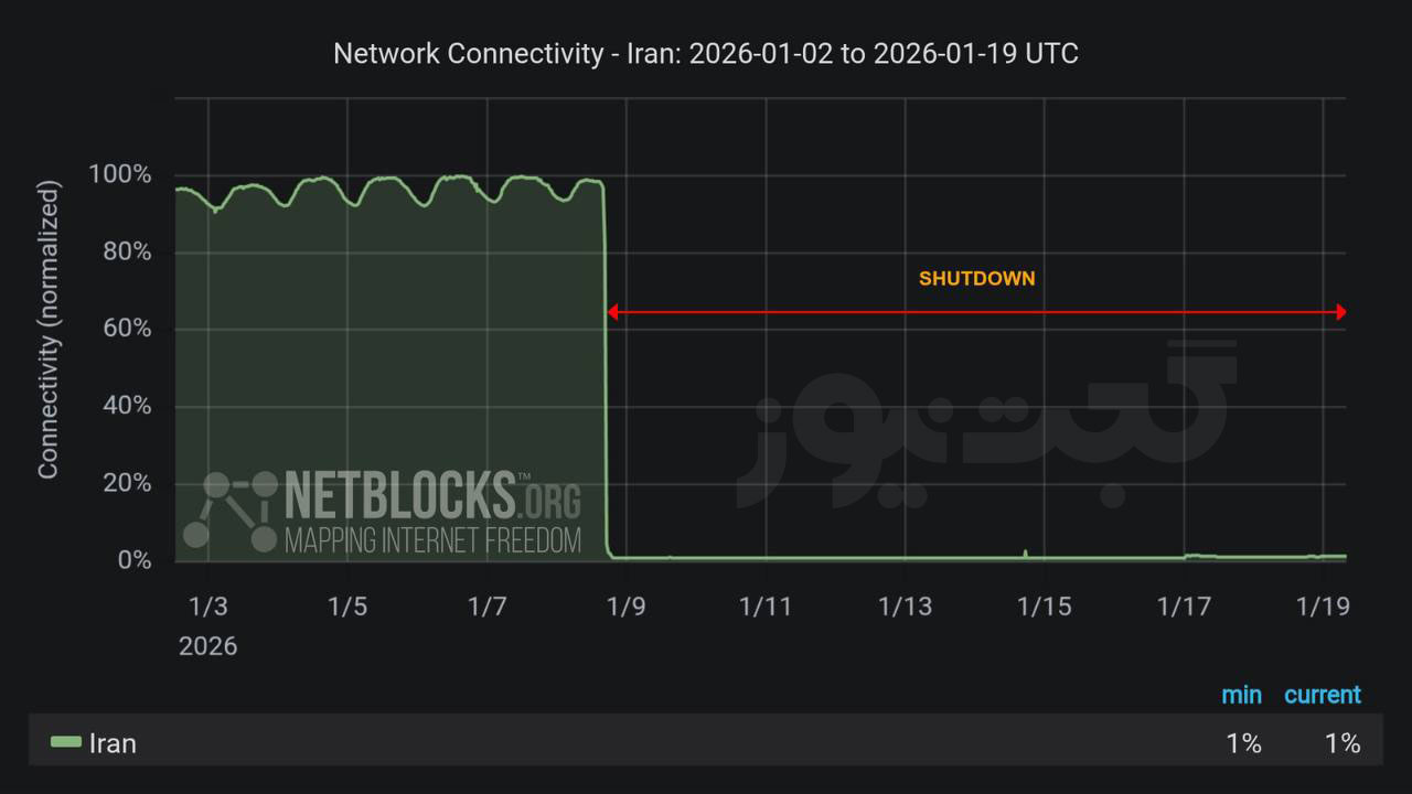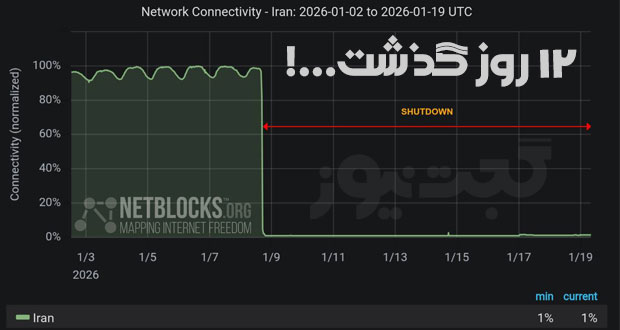 نت بلاکس: ایران اکنون دوازدهمین روز قطعی اینترنت را سپری میکند