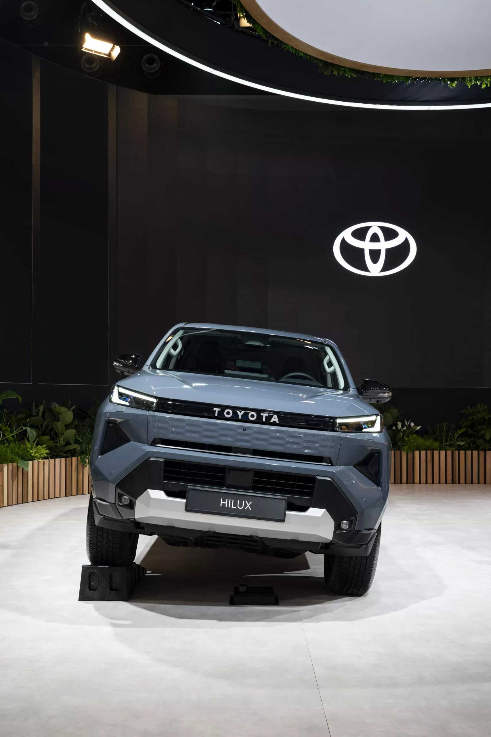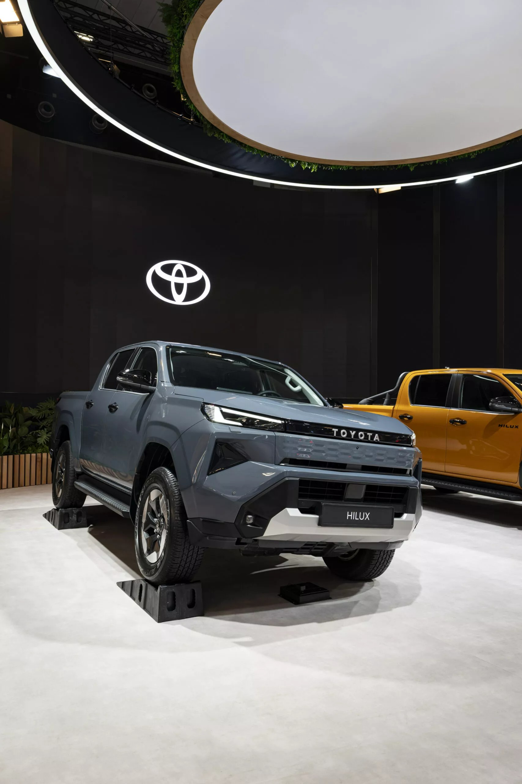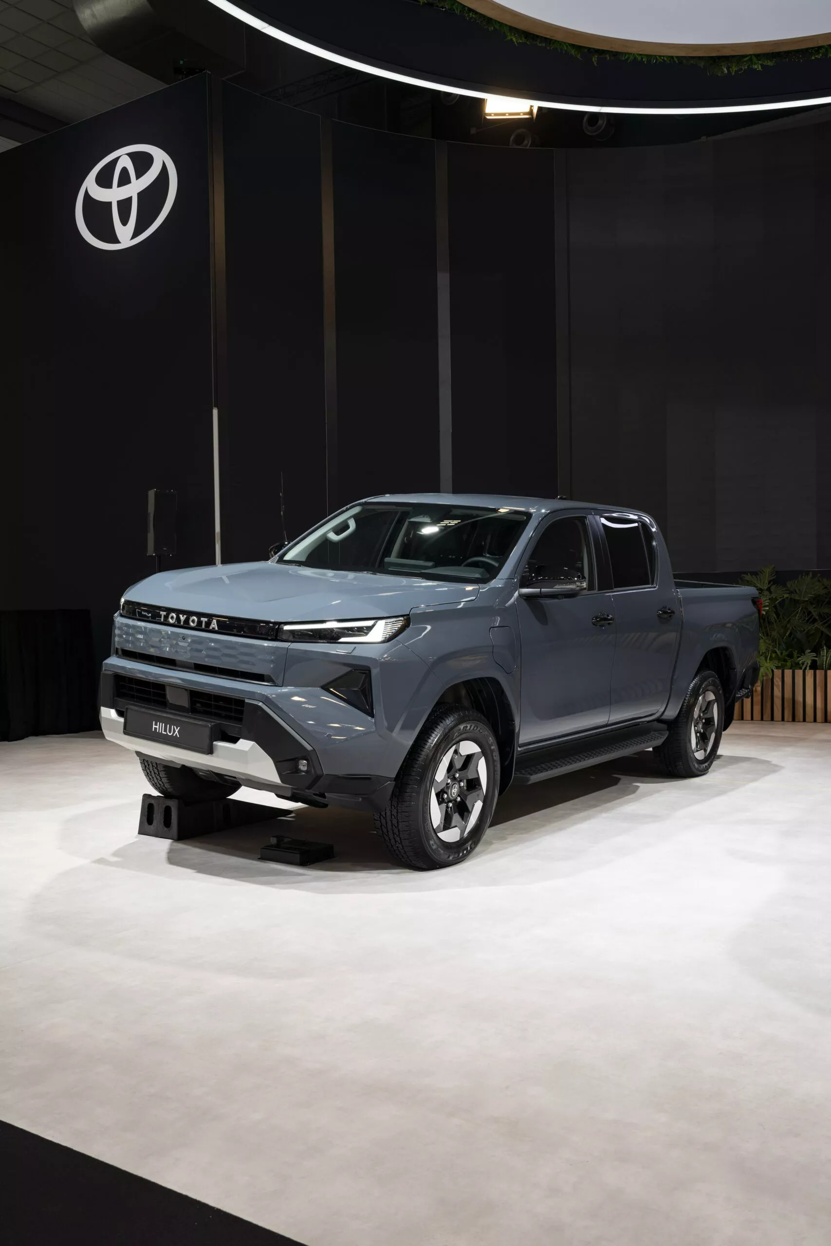 پیکاپ برقی هایلوکس (Hilux BEV) با باتری ۵۹.۲ کیلوواتساعتی و سیستم چهار چرخ محرک دائمی دو موتوره معرفی شده است. موتور جلو ۲۰۵ نیوتنمتر و موتور عقب ۲۶۸ نیوتنمتر گشتاور تولید میکنند. برد حرکتی WLTP این مدل ۲۵۸ کیلومتر (۱۶۰ مایل) است که در رانندگی شهری به ۳۸۰ کیلومتر (۲۳۶ مایل) میرسد.