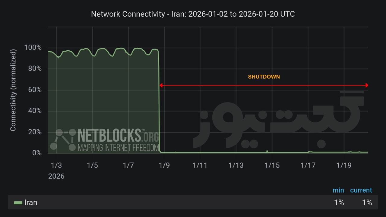دادههای جدید نتبلاکس (NetBlocks) نشان میدهد که پس از گذشت ۱۲ روز از قطع سراسری اینترنت، ترافیک شبکه شاهد یک «بازگشت موقت و بهشدت فیلتر شده» بوده که شائبه اجرای فاز نهایی اینترنت طبقاتی را تقویت کرده است.