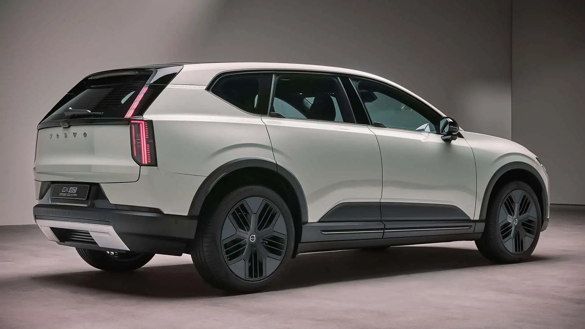 طراحی بیرونی ولوو EX60 با چراغهای دوقسمتی و جلوپنجره بسته، هماهنگ با زبان طراحی EX90 است. دستگیرههای درب بهصورت بالکهای مخفی در خط کمربند بدنه ادغام شدهاند که به ضریب درگ پایین ۰٫۲۶ کمک میکند. اندازه چرخها بین ۲۰ تا ۲۲ اینچ متغیر است و مدل آفرود EX60 Cross Country با چرخهای ۲۱ اینچی اختصاصی، صفحات محافظ استیل و قوس چرخهای برجستهتر متمایز میشود.