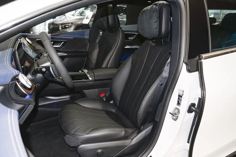 این نمایشگر در مدل EQE 500 مجهز به حسگر اثر انگشت است که امنیت نرم افزاری آن را تضمین میکند. یکی از شاخصترین مثالها برای مهارت طراحی مرسدس در کابین، استفاده خلاقانه از نورپردازی داخلی است؛ بخشهایی مثل دریچههای تهویه، داشبورد، پنل درها و حتی صندلیها به طور هماهنگ نورپردازی شدهاند که در شبها، جذابیت و لوکس بودن فضای داخلی خودرو را دوچندان میکند.