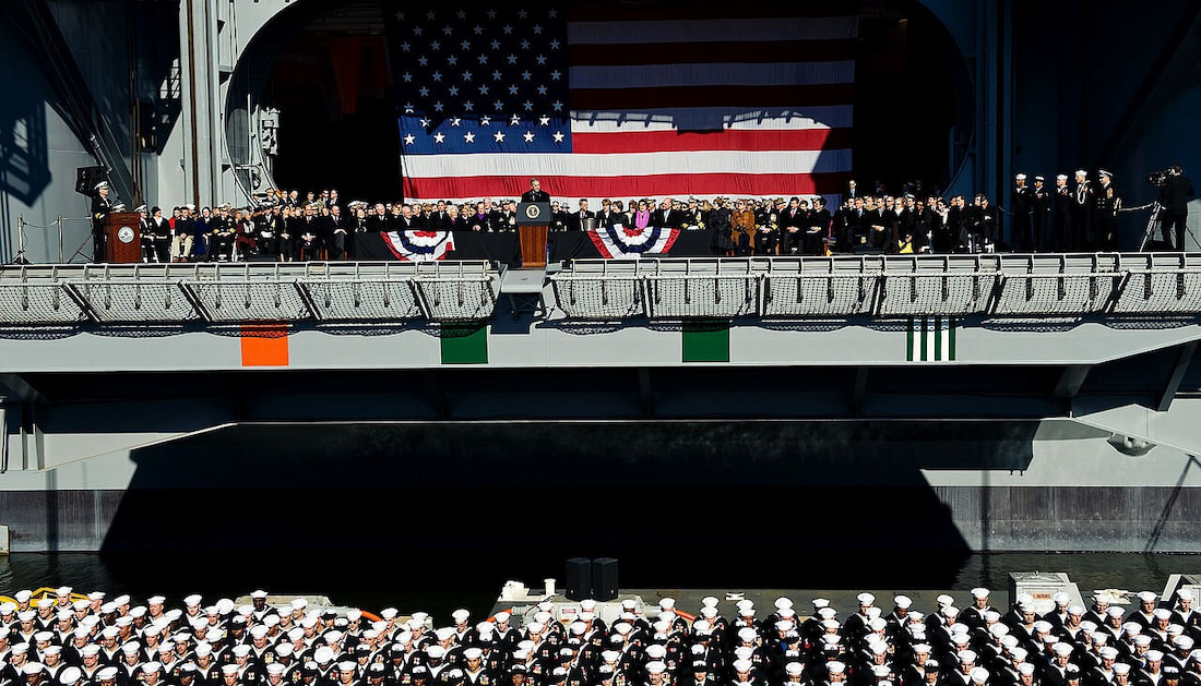 در ۱۰ ژانویه ۲۰۰۹، ناو رسمأ وارد خدمت نیروی دریایی ایالات متحده شد. مراسم تحویل و کمیسیونینگ در پایگاه ناوگان اقیانوس اطلس در نورفولک برگزار گردید. در این مراسم جرج دبلیو. بوش، رئیسجمهور وقت آمریکا و پسر جرج اچ. دبلیو. بوش، نیز حضور داشت و ضمن ادای احترام به پدر خود، این ناو را ادای دِینی ملی به نسلی از مردم که جهان را از استبداد نجات دادند توصیف کرد.
