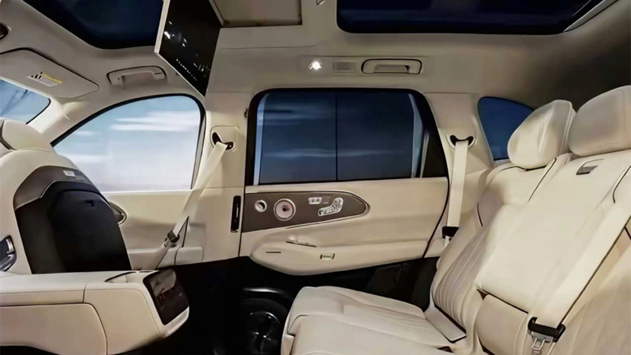 متریال استفادهشده در بخشهای قابل لمس، شامل ترکیب روکشهای نرم با تزئینات فلزی برسخورده است که حس یک محصول پرچمدار را به سرنشین منتقل میکند. در ردیف دوم، فضای پا و سر جادارتر از بسیاری از شاسی بلندهای همکلاس طراحی شده و تمرکز بر آسایش سرنشینان با صندلیهایی عریض و تهویه مستقل بهخوبی رعایت شده است.