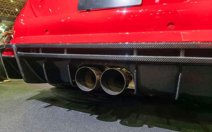 اوج شاهکار آیرودینامیک در بخش عقب خودرو به نمایش گذاشته شده است، جایی که یک باله عظیم با طراحی پایه گردن قویی روی درب صندوق نصب شده و اجازه میدهد جریان هوای تمیز مستقیماً به سطح زیرین باله برخورد کند. تکمیلکننده این نمای تهاجمی، یک دیفیوزر غولپیکر است که جریان هوا را از زیر خودرو به شکل کنترلشده خارج میکند و در نهایت، خروجیهای اگزوز دوتایی جدید امضای نهایی این هیولای تهاجمی را ثبت کردهاند.