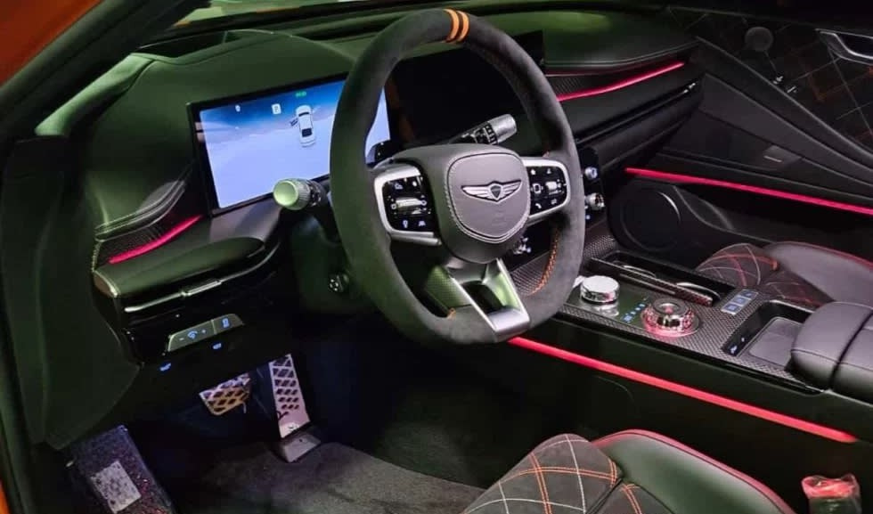 علاوهبر آن، فیبر کربن در کنسول مرکزی نشانگرهای اختصاصی نسخه ماگما و فرمان با بخش پایینی تختشده، فضای رانندهمحور و مسابقهای به کابین دادهاند. در عین حال، سطح لوکس بودن جنسیس همچنان حفظ شده است و متریالها کاملاً پریمیوم هستند. از پوشش نرم داشبورد گرفته تا جزئیات فلزی صیقلی روی دریچههای تهویه همگی با بهترین مواد اولیه ساخته شدهاند.