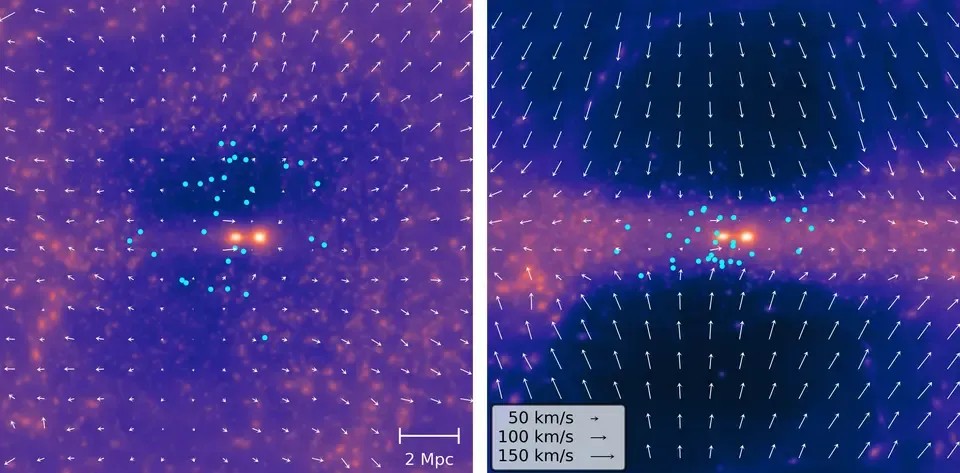 برای دههها، اخترشناسان در مواجهه با کهکشان آندرومدا، همسایهی کهکشانی ما، متحیر بودند. این کهکشان با سرعت ۱۱۰ کیلومتر بر ثانیه (۶۸ مایل بر ثانیه) در حال حرکت بهسمت ما است، در حالی که تقریباً تمام کهکشانهای بزرگ دیگر در جهان محلی از راه شیری دور میشوند. این پدیده با قانون هابل، که بیان میکند کهکشانها با سرعتی متناسب با فاصلهشان از زمین در حال دور شدن هستند، در تضاد بود.