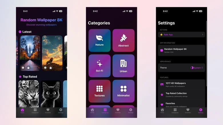 این اپلیکیشن برخلاف رقبا محیطی تمیز و بدون تبلیغات بازیهای مزاحم دارد و مجموعهای از تصاویر پسزمینه با کیفیت ۸K را ارائه میدهد. دستهبندیهای منظم و امکان تغییر تم برنامه باعث شده تا با وجود تعداد کم دانلود یکی از بهترین گزینهها برای زیباسازی آیفون باشد.