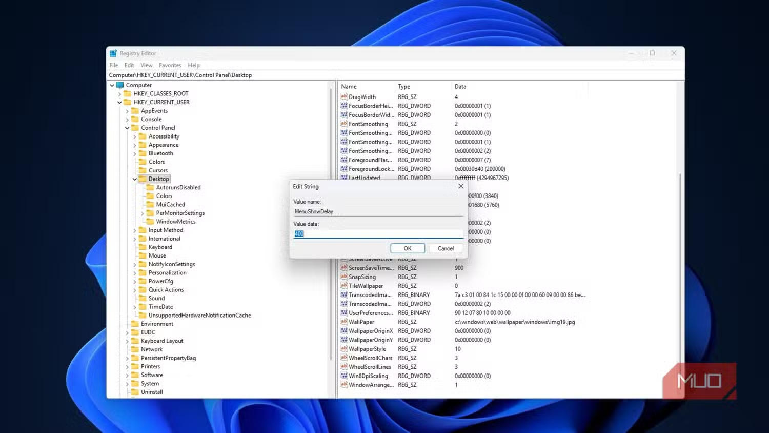 افزایش سرعت ویندوز ۱۱ با تغییر MenuShowDelay