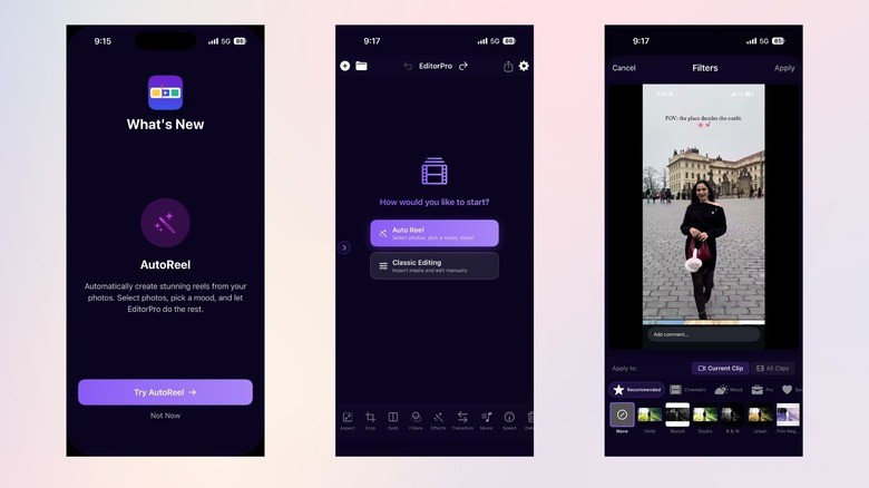 ویژگی Auto Reel به شما امکان میدهد با انتخاب چند عکس، به صورت خودکار یک ریل آماده برای انتشار بسازید. این اپلیکیشن از خروجی 4K بدون واترمارک پشتیبانی میکند و دارای افکتها، فیلترها و ابزارهای ویرایشی حرفهای است.