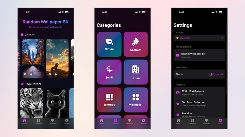 این اپلیکیشن به شما اجازه میدهد بین تمهای روشن و تاریک جابهجا شوید، والپیپرها را دانلود کرده و مجموعه شخصی خود را بسازید.