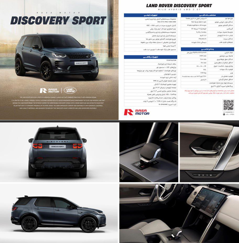 و اما خودرو بعدی که راسا موتور قصد دارد به بازار عرضه کند، لندرور دیسکاوری اسپرت است. این شاسی بلند لوکس و کامپکت با طراحی ظاهری زیبا و کابین مدرن و جادار، میتواند نظر مساعد سرنشینان را جلب کند. این خودرو بنزینی مجهز به سیستم دو دیفرانسیل شده و از امکانات و تجهیزات فوق العادهای بهرهمند گردیده است.