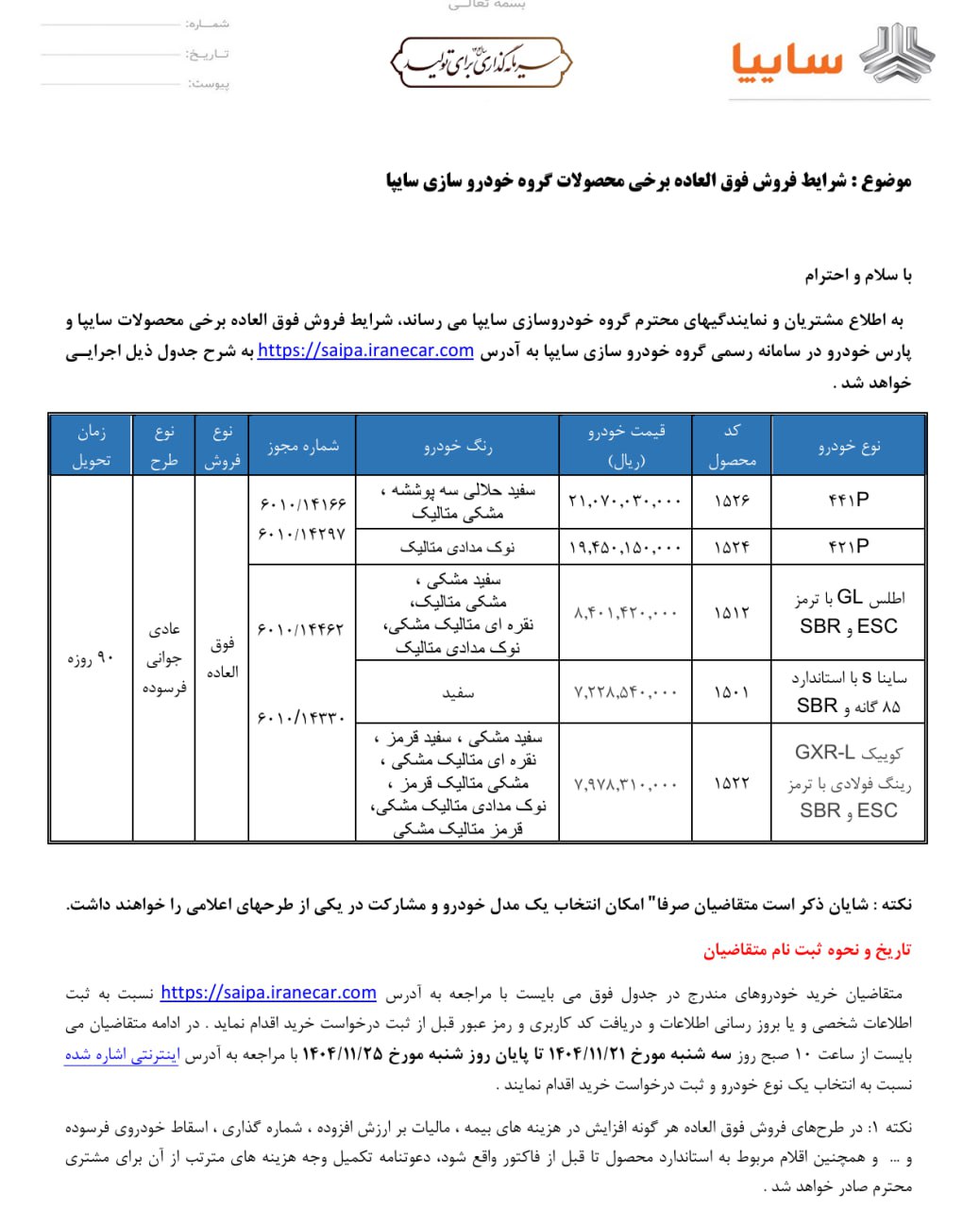 - شرایط فروش محصولات سایپا در بهمن 1404