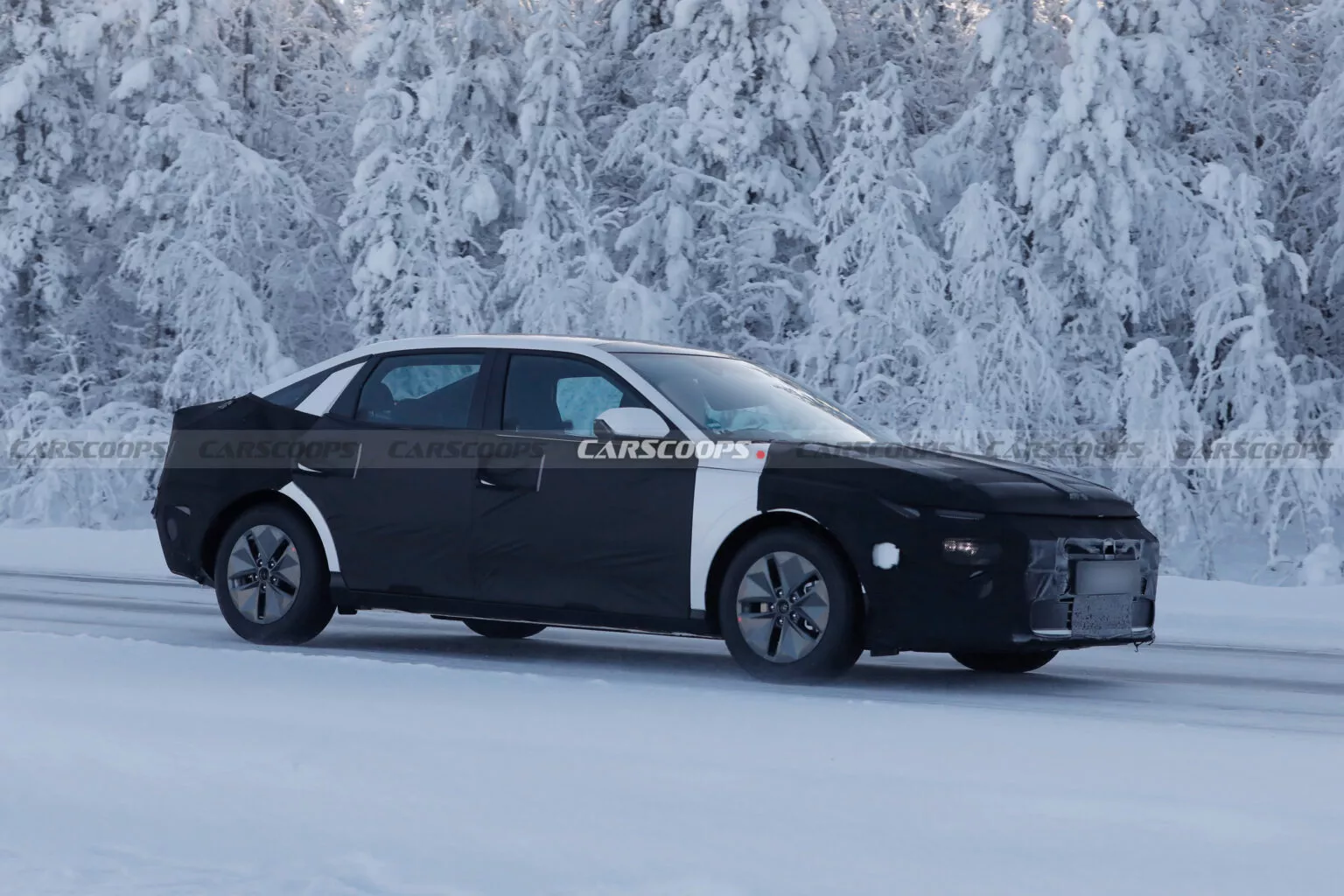 اگرچه پوشش های سیاه رنگ بخش زیادی از بدنه را پوشانده اند اما فرم کلی خودرو نشان دهنده ابعاد بزرگ تر و استایلی با ابهت تر است. نسل جدید النترا در نمای جلو احتمالا با جلوپنجره ای عریض و چراغ های چند تکه عرضه می شود که شباهت زیادی به زبان طراحی محصولات جدید این برند دارد.