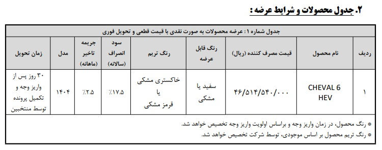 جزئیات شرایط شرایط فروش بهمن شوال 6 هیبریدی در بهمن 1404