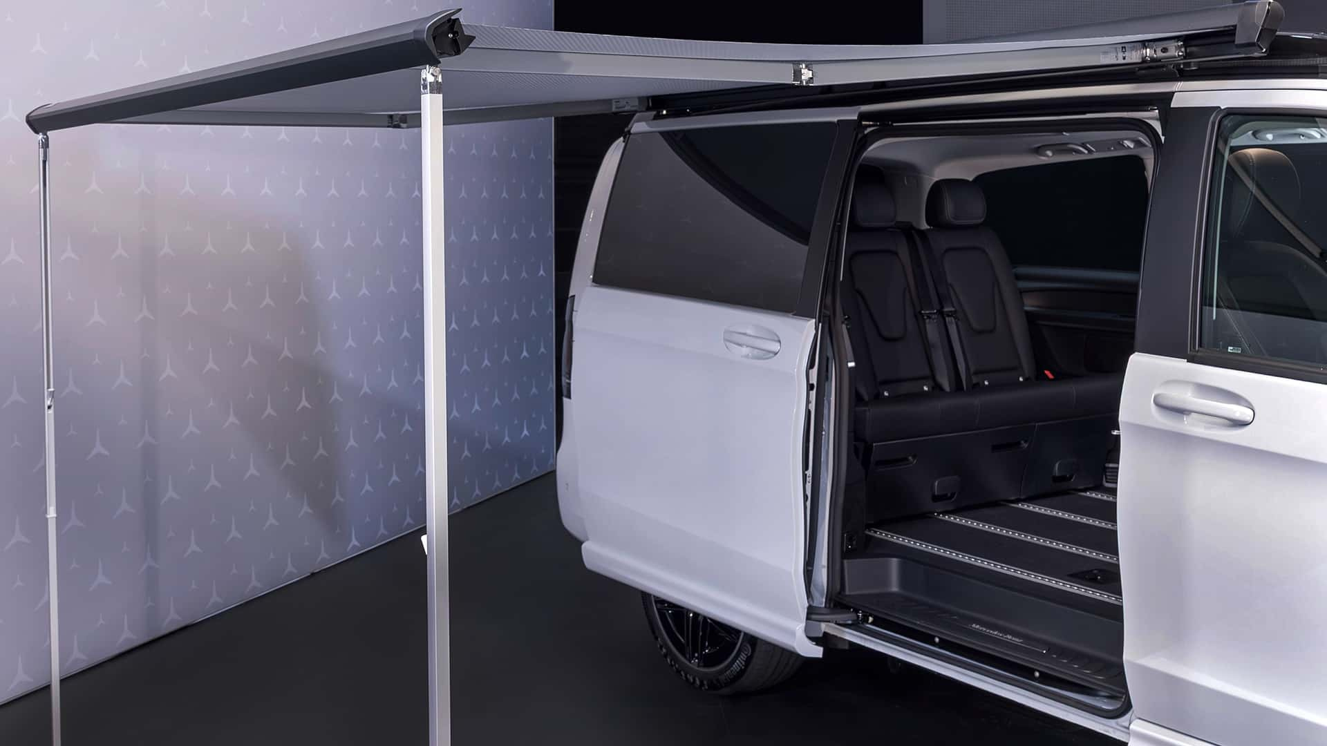 ون مرسدس مارکوپولو 2027 با حفظ اصالت طراحی کلاس V، گام بلندی در مسیر تکامل ونهای کمپر برداشته است. ظاهر بیرونی همچنان همان چهره شیک و شناختهشده کلاس V را حفظ کرده، اما تغییرات اصلی در سقف آن رخ داده و سقف بازشوی جدید با پوسته آلومینیومی سبک و مقاوم، نهتنها زیبایی ظاهری خودرو را ارتقا داده بلکه عملکرد فنی آن را نیز متحول کرده است.