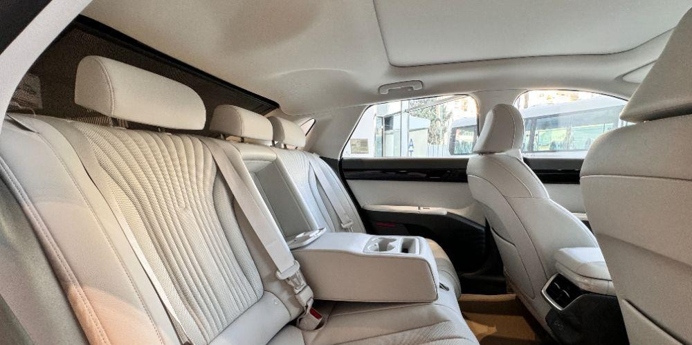 هیوندای آزرا 2026 با فاصله محوری ۲۸۹۵ میلیمتری در کلاس سدانهای بزرگ قرار میگیرد. این ابعاد نهتنها باعث افزایش فضای سرنشینان و راحتی دید عالی برای راننده و سرنشینان میشود، بلکه بر پایداری در سرعتهای بالا نیز تأثیر مستقیم دارد. طراحان هیوندای در نسل جدید آزرا زبان طراحی Parametric Dynamics را با جزئیات ظریفتر بهکار گرفتهاند و جلوپنجره یکپارچه با نوار LED ممتد، چهرهای خاص و بسیار مدرن به خودرو داده است و بخش عقب با خطوط نرم و چراغهای متصل تمام عرض، حس لوکس بودن را دوچندان میکند.