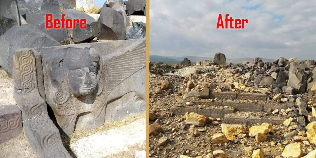 معبد باستانی عین دارا که پس از جنگ به ویرانه تبدیل شد، نمایانگر تاثیر مخرب درگیریها بر میراث فرهنگی و طبیعی است.