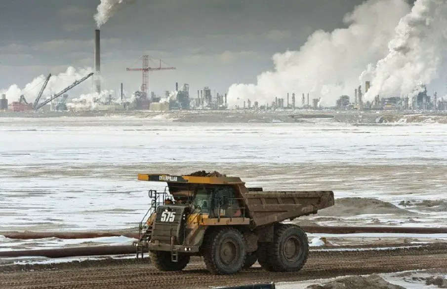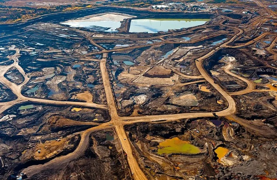 عملیات حفاری در منطقهی شنهای نفتی که حتی از فضا نیز قابل مشاهده است، وسعت تخریب محیط زیست را آشکار میسازد.