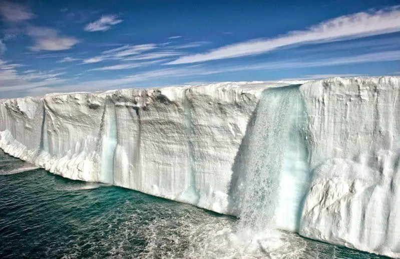 آب شدن یخها در قطب، آبشاری عظیم را بر روی یک کوه یخ ایجاد کرده که نشانهای نگرانکننده از گرمایش جهانی است.
