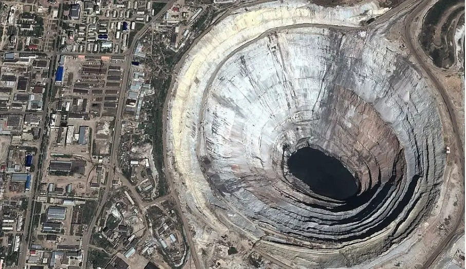 بزرگترین معدن الماس جهان (معدن میر) در سیبری، گواه ابعاد بیکران تخریب انسان برای دستیابی به منابع است.