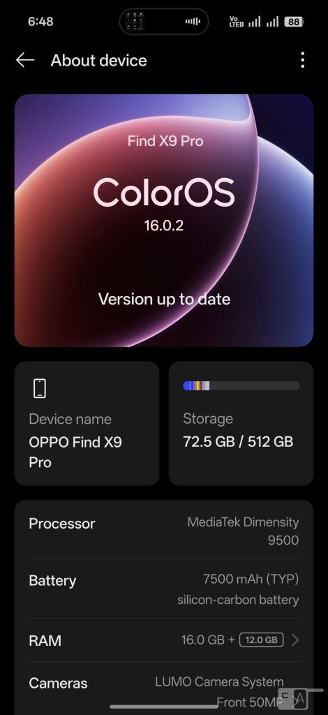 گوشی هوشمند اوپو فایند ایکس 9 پرو که اخیرا برای بازارهای جهانی و هند عرضه شده، از نمایشگر ۱.۵K با نرخ نوسازی ۱۲۰ هرتز LTPO AMOLED و پردازنده مدیاتک دیمنسیتی ۹۵۰۰ بهره میبرد. همچنین دارای استاندارد مقاومت سهگانه IP66 + IP68 + IP69 و یک باتری بزرگ ۷۵۰۰ میلیآمپرساعتی است.