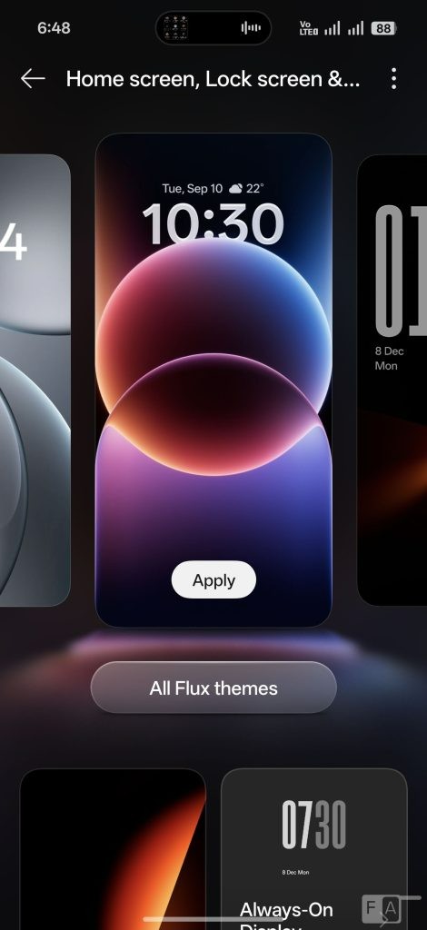 این گوشی به نمایشگر تخت ۶.۷۸ اینچی LTPO AMOLED با رزولوشن ۱.۵K (۲۷۸۰ در ۱۲۶۴ پیکسل) و نرخ نوسازی ۱ تا ۱۲۰ هرتز مجهز است. حداکثر روشنایی آن در حالت تمام صفحه به ۱۸۰۰ نیت و در نمایش محتوای HDR به ۳۶۰۰ نیت میرسد و از محافظ گوریلا گلس ویکتوس ۲ بهره میبرد.