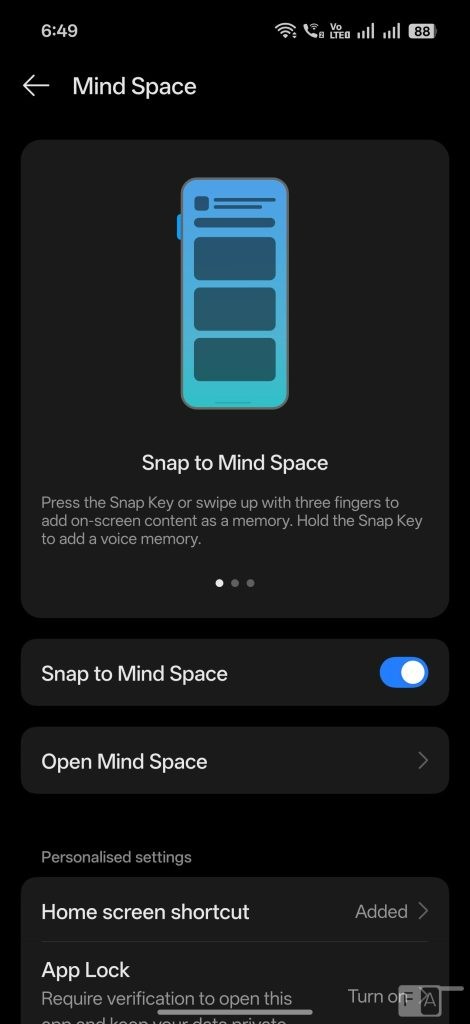 کلید جدید Snap Key امکان جابجایی بین حالتهای صدا، لرزش و بیصدا را فراهم میکند و میتوان آن را برای دسترسی سریع به دوربین، ترجمه یا چراغقوه شخصیسازی کرد. همچنین قابلیت Mind Space به کاربران امکان ذخیره و سازماندهی اطلاعات روی صفحه را میدهد. این قابلیت با هوش مصنوعی و Gemini ادغام شده تا محتوای ذخیرهشده را درک کرده و بر اساس آن اقدامات لازم را پیشنهاد دهد.