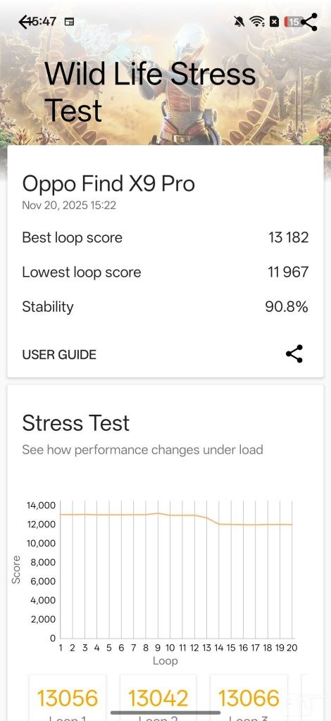 در تست استرس 3D Mark Wildlife، امتیاز ۹۰.۸٪ کسب کرد که نشاندهنده پایداری حرارتی عالی است.