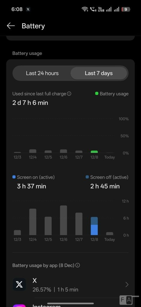 اوپو فایند ایکس ۹ پرو به یک باتری سیلیکون-کربن ۷۵۰۰ میلیآمپرساعتی مجهز شده که با وجود افزایش ظرفیت قابلتوجه نسبت به نسل قبلی (۵۹۱۰ میلیآمپرساعت)، اندازه گوشی را تغییر نداده است. این باتری به راحتی بیش از یک روز کامل حتی با استفاده سنگین دوام میآورد.
