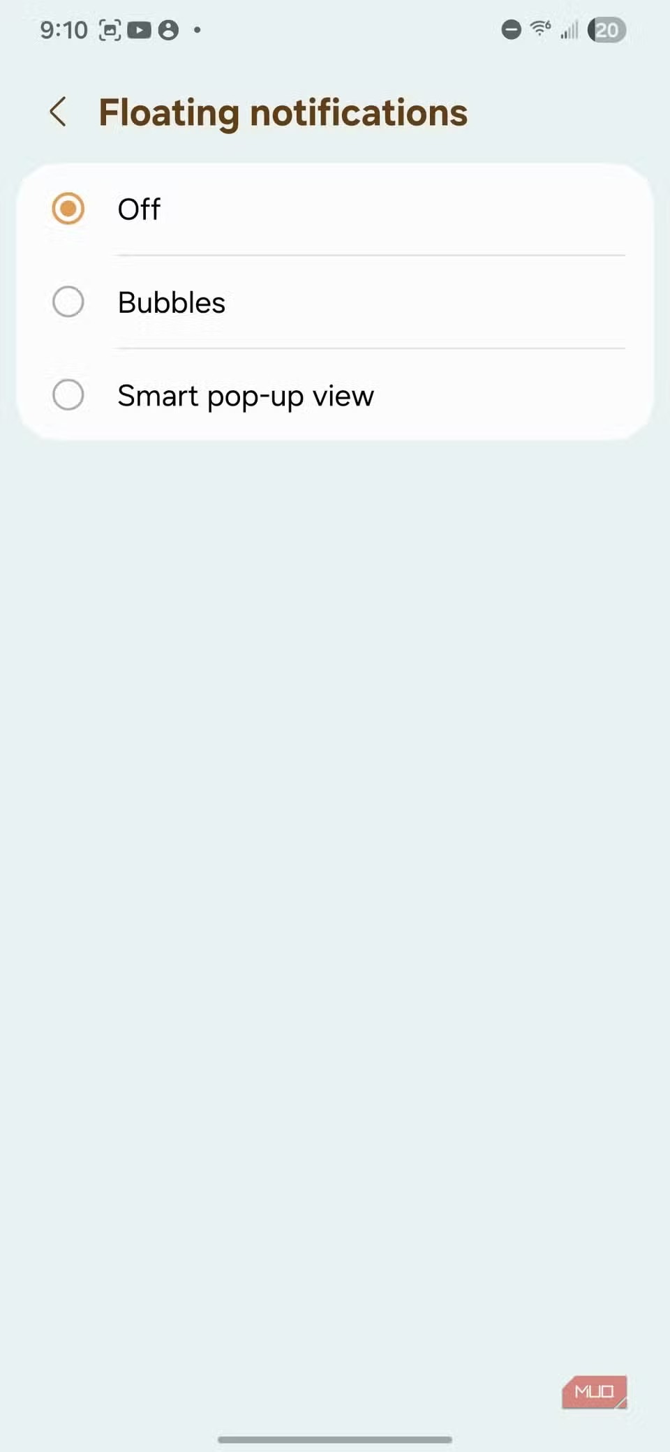 - اعلانهای حبابی شناور (Floating Bubble Notifications) را خاموش کنید: نحوه غیرفعالسازی: Settings -> Notifications -> Advanced Settings -> Floating notifications -> Disable.