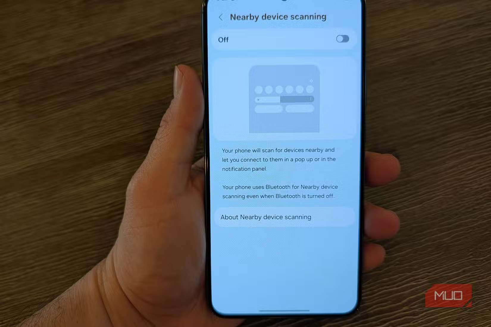 ۳. اسکن دستگاههای نزدیک (Nearby Device Scanning) را خاموش کنید