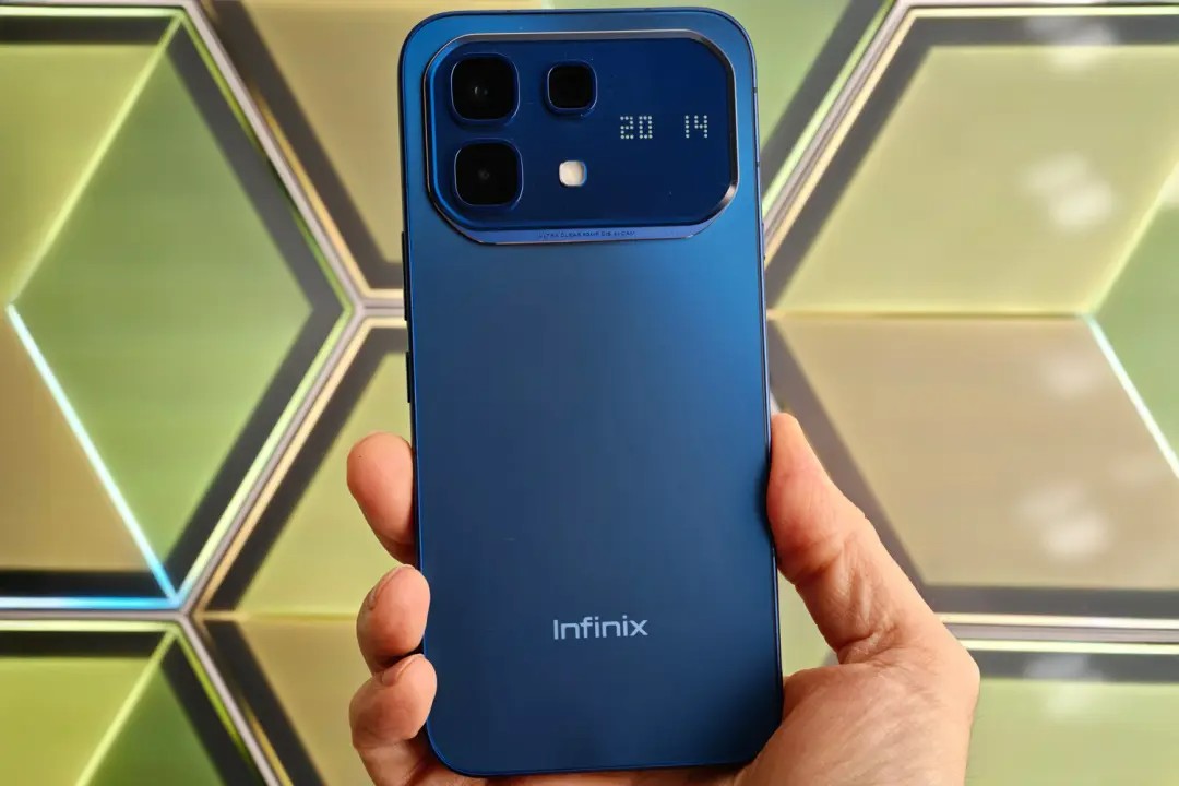 با وجود تاثیرپذیری از طراحی آیفون در جزیره دوربین پشتی، Infinix با اشکال مستطیلی و حلقه نور Halo (یک ویژگی ثابت در سری Note) تمایز ایجاد کرده است. مهمترین قابلیت طراحی، نمایشگر Active Matrix LED قابل شخصیسازی در پشت گوشی است. این نمایشگر زیر پلیکربنات آینهای پنهان است و تنها هنگام دریافت نوتیفیکیشن یا تکان دادن گوشی برای نمایش زمان فعال میشود. همچنین، مجموعهای از مینیگیمها را میتوان با دکمههای کناری روی آن اجرا کرد. این نمایشگر، ویژگی اصلی گرانقیمت یا توجیه کننده قیمت گزاف گوشی نیست.