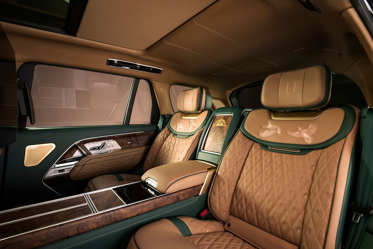 درون کابین دریچههای هوای جانبی آلومینیومی، نشانهای فلزی ویژه و پرداختهای دقیق در نوارهای کرومی، همگی با دقتی مثالزدنی ساخته شدهاند تا حس لمس یک کالای سفارشی و کاملاً شخصیسازیشده را القا کنند. در نمای داخل همهچیز تداعیگر یک باشگاه خصوصی اشرافی است تا یک خودرو. فضای داخلی با تلفیقی از چوب گردوی فرانسوی با منافذ باز، چرم دستدوز اعلا و جزئیات طلایی H&H تزئین شده است.