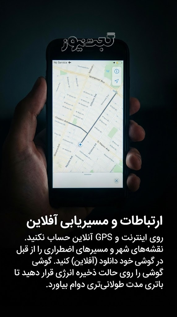 بهترین راهکار، دانلود نقشههای آفلاین شهر و شناسایی مسیرهای اضطراری از قبل است. گوشی خود را همیشه در حالت ذخیره انرژی (Power Saving) قرار دهید و از اپلیکیشنهای آفلاین برای جهتیابی استفاده کنید. این کار به شما کمک میکند تا در صورت نیاز به جابهجایی، بدون نیاز به اتصال شبکه، بهترین مسیر را برای رسیدن به نقاط امن پیدا کنید.