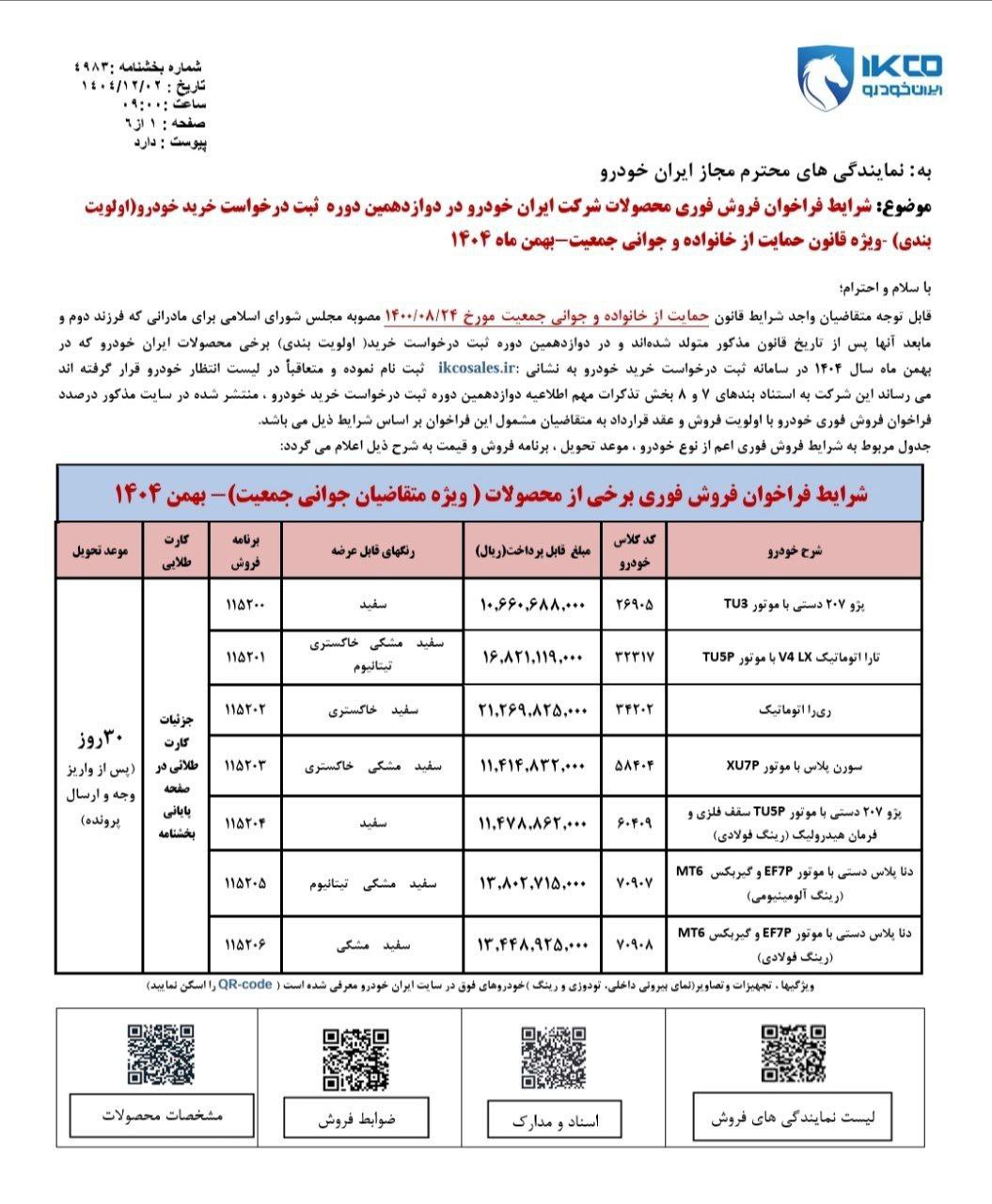 - شرایط فروش محصولات ایران خودرو ویژه متقاضیان جوانی جمعیت – اسفند 1404